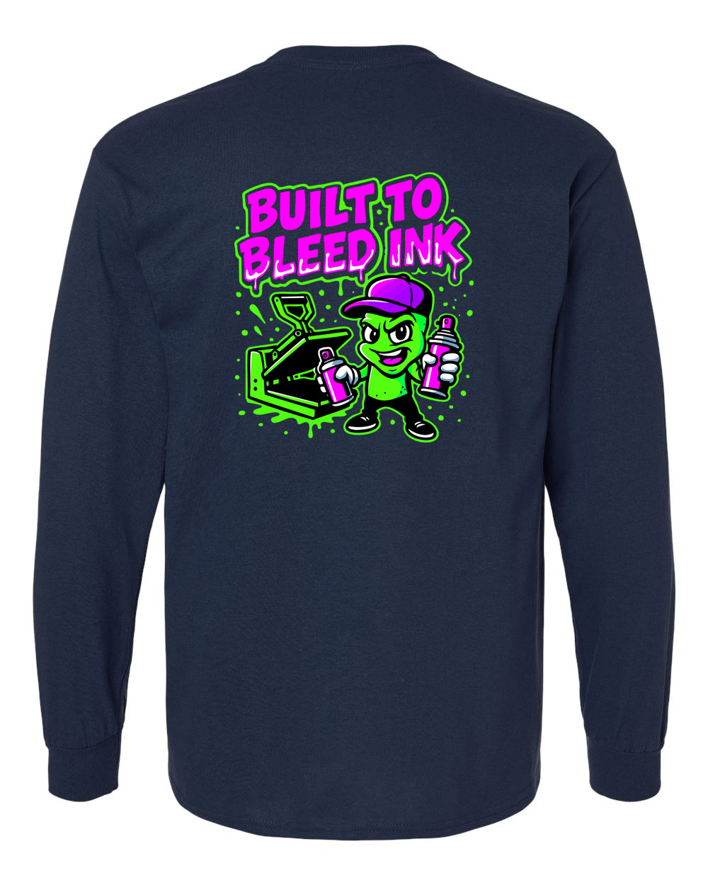 Whether you’re layering up or keeping it casual, choose your style: T-shirt, Crew Neck, Hoodie, or Long Sleeve Tee. Available in deep Navy or sleek Black, both perfect backdrops for Inktown’s signature punchy designs.