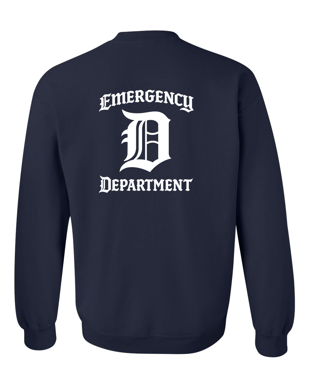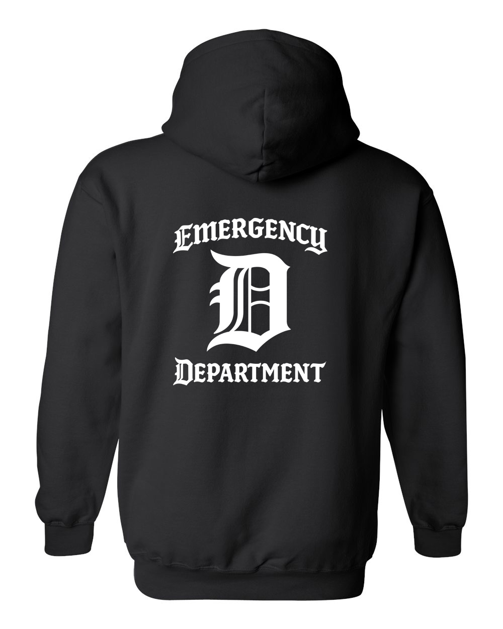 The Emergency Department Shirt features a clean and bold Old English D design centered between “Emergency” and “Department” lettering. This timeless layout delivers a strong and professional look inspired by classic Detroit-style typography.